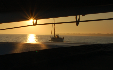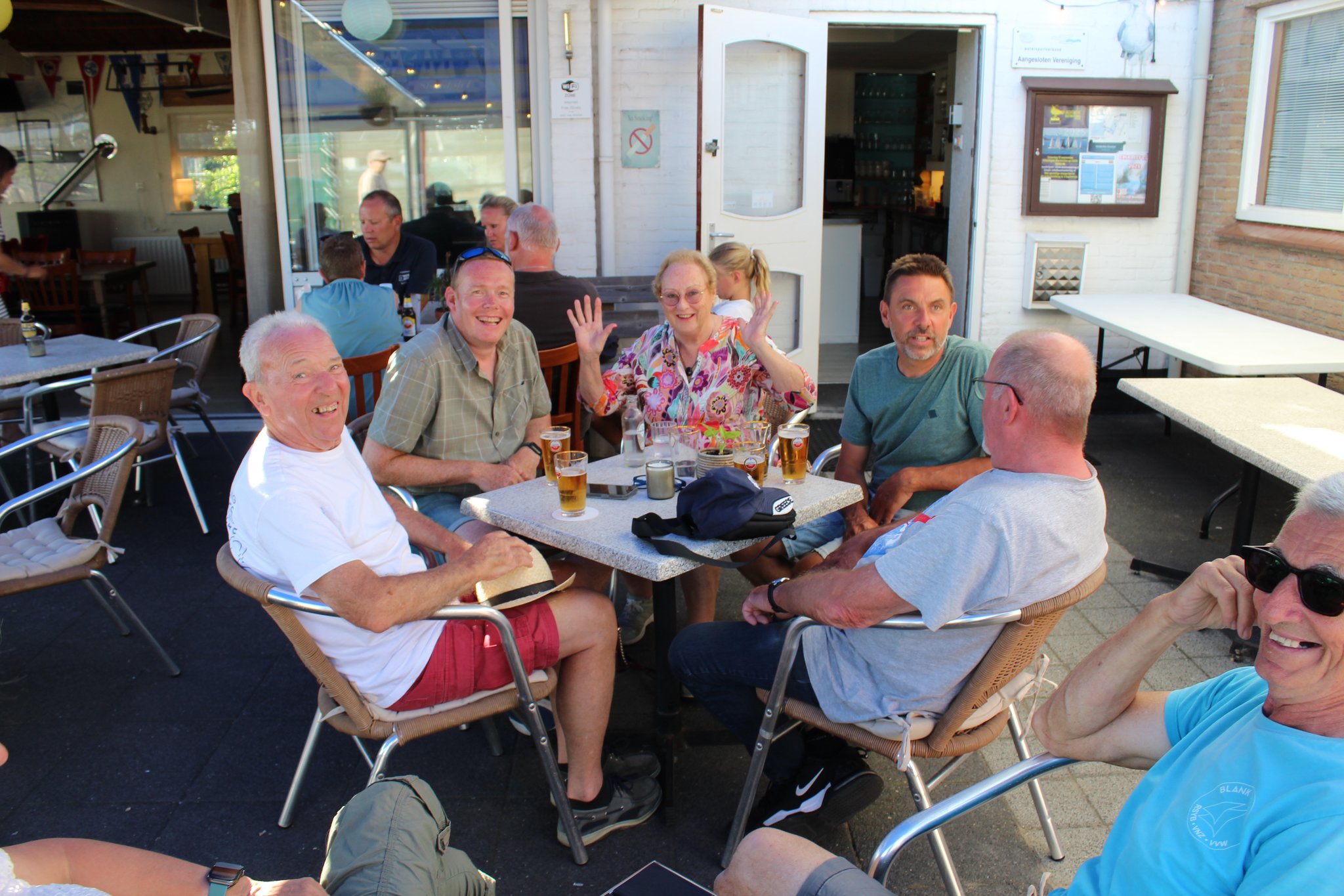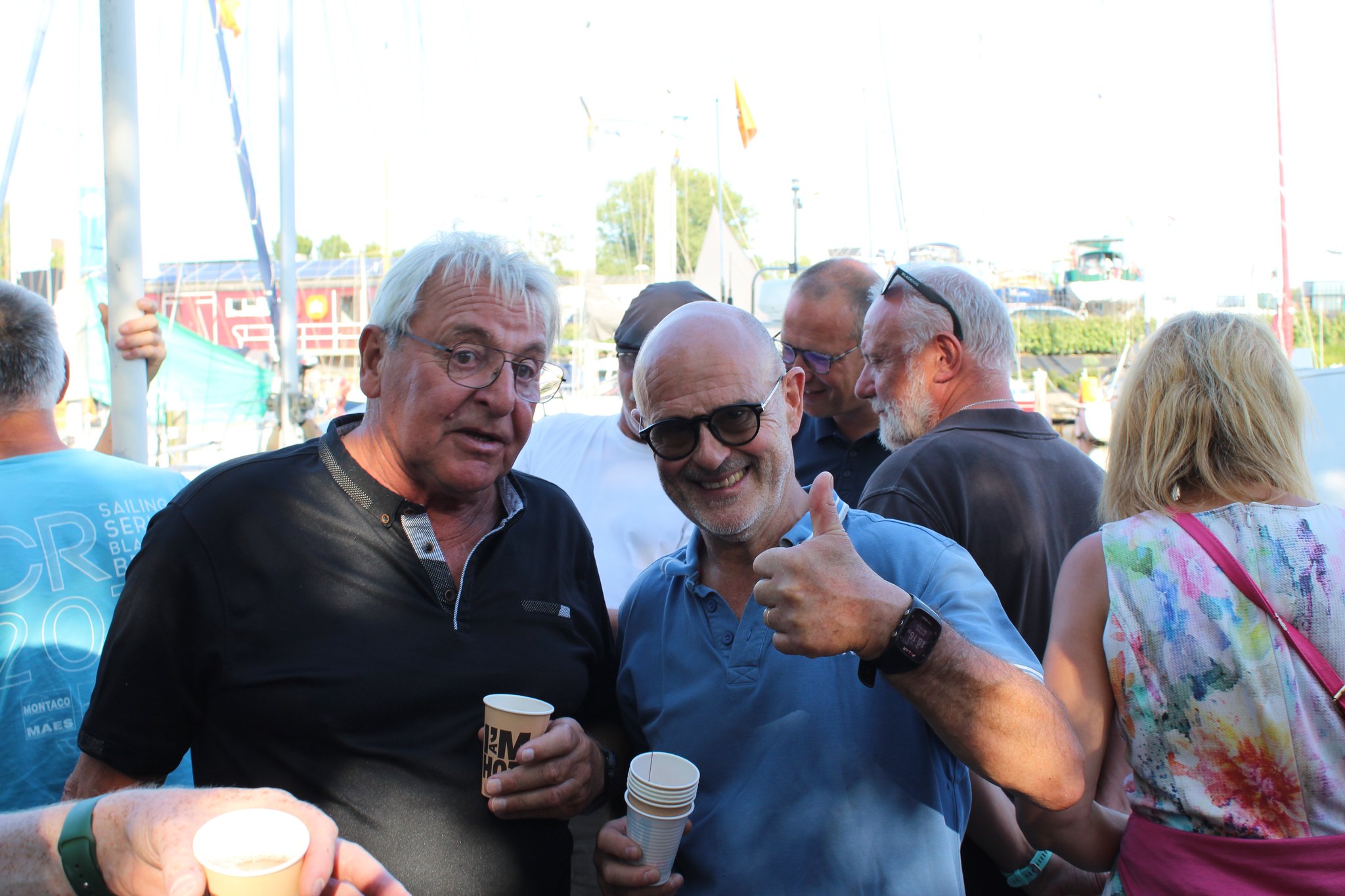 De volgende ochtend liet de zon het wat afweten, maar er stond wél wind! Tijd om de zeilen te hijsen en koers te zetten naar Breskens. In de namiddag was er nog ruimte voor een strandwandeling, waarna we opnieuw samenkwamen op het ponton voor het aperitief.